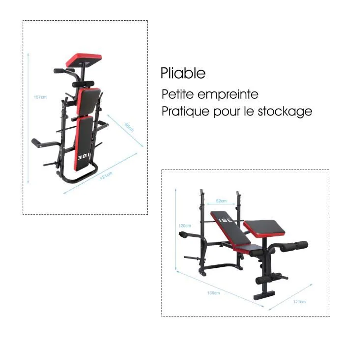 Le banc de musculation multifonctionnel ISE RIO modèle SY-5430B est un outil d’entraînement essentiel pour ceux qui cherchent à améliorer leur force musculaire et leur endurance dans le confort de leur foyer. Avec un cadre en acier robuste et un siège et un dossier rembourrés pour plus de confort pendant l’entraînement, il est capable de supporter une large gamme de poids et de tailles d’utilisateurs différents, ce qui en fait un outil d’entraînement polyvalent adapté à une grande variété d’entraînements de personnes. De plus, il comprend des supports d’haltères réglables et des supports d’exercices d’haltères, permettant aux utilisateurs d’effectuer une variété d’exercices de force et d’endurance. En bref, il s’agit d’un outil d’entraînement de haute qualité et polyvalent qui aidera certainement les utilisateurs à atteindre leurs objectifs de mise en forme dans le confort de leur foyer.